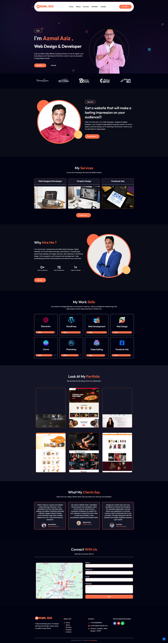 I am Azmal Aziz, a passionate Web Developer based in Pandua, West Bengal. I specialize in crafting high-performance Portfolio, Business, E-commerce, and LMS websites. By combining technical expertise with a modern design approach, I build scalable digital solutions that help brands thrive in the online world.